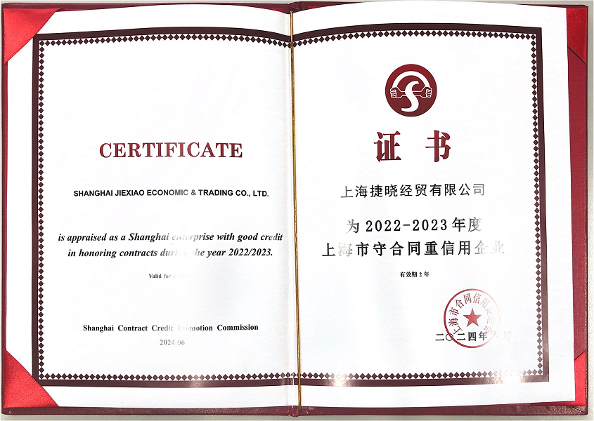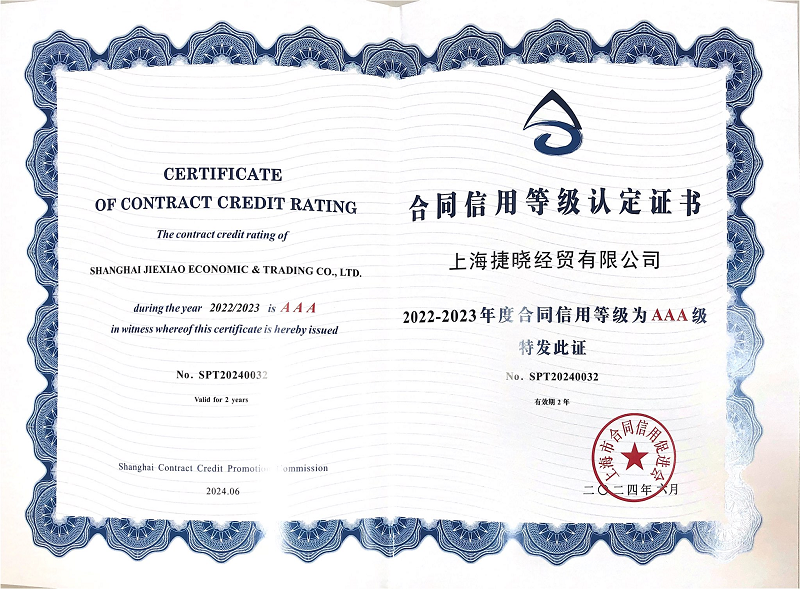 近日,公司被“上海市合同信用促進會”評為2022-2023年度上海市“守合同重信用”企業(yè),評定為AAA級。